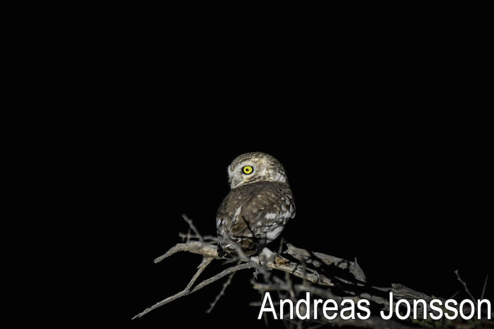 At night, spotlighting on/off the road along Oued Jenna gave a dead Short-eared Owl, 2 gerboise, Domestic cat or hybrid ? Hedgehog and a Sand Cat (21:35 temperature 19°)