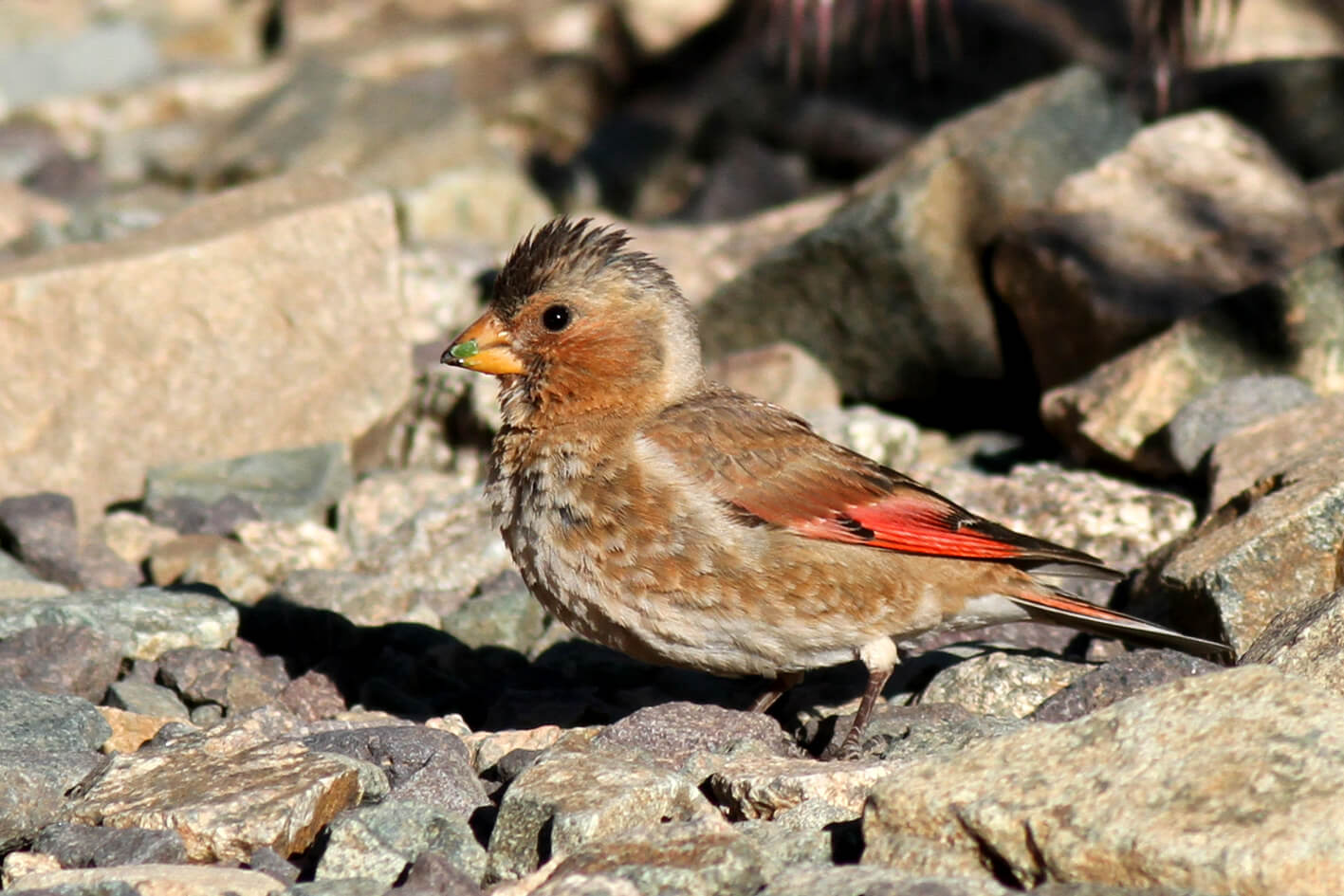 - présence surprenante du Roselin githagine (Bucanetes githagineus) au sein d’un groupe de Roselins de l’Atlas (Rhodopechys alienus) à environ 2800m d’altitude (connu dans le Haut-Atlas jusqu’à 1800 -2000m d’altitude par Thevenot et al.)