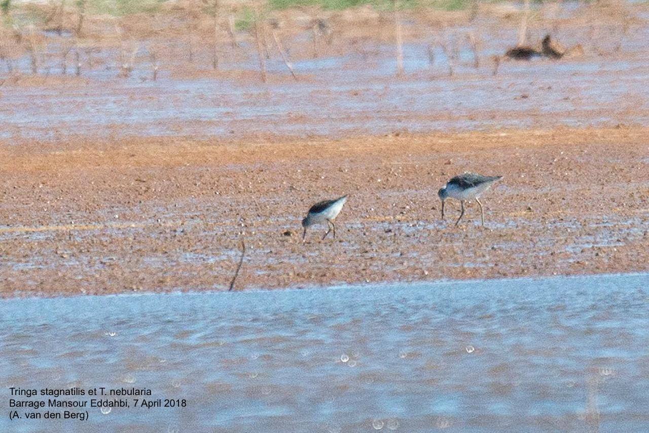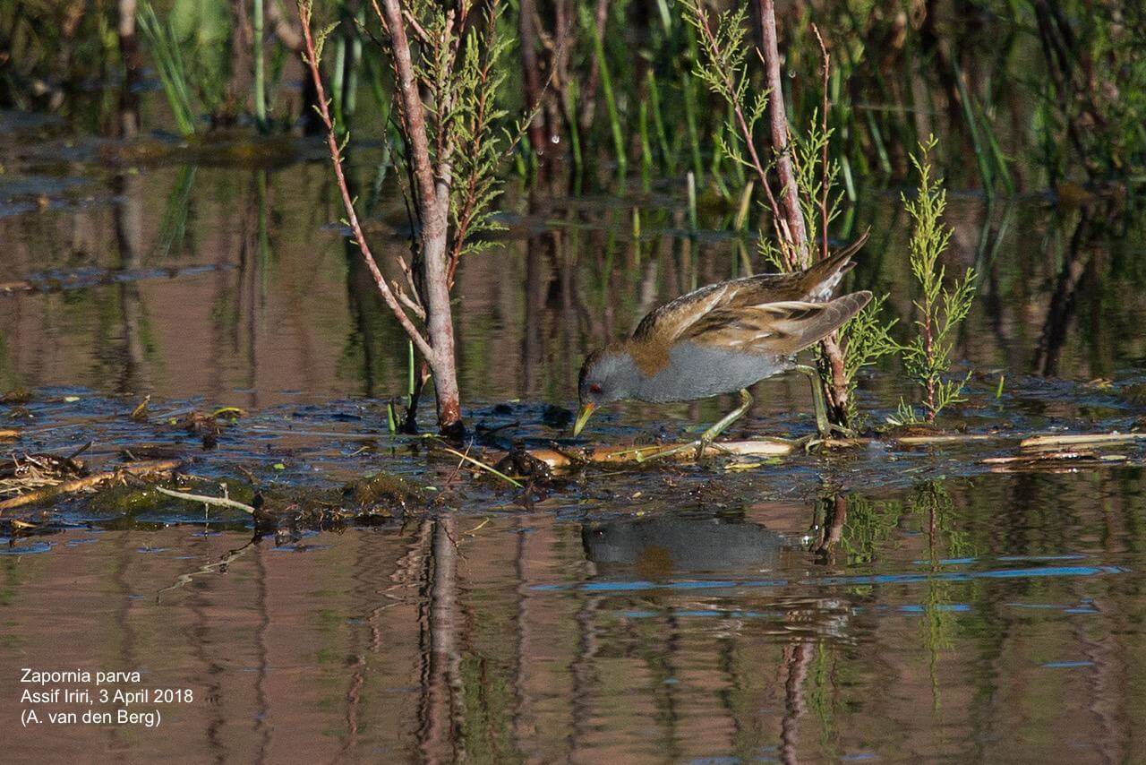 More unexpected sightings included up to two Spotted Crakes (Porzana porzana) at the Asif Iriri river west of Ouarzazate on 3 & 7 April; two males and a female Little Crake (Zapornia parva) at Iriri on 3 April; a (new) nest with young of Pharaoh Eagle Owl (Bubo ascalaphus) along the road from Boumalne to Imider; a total of 59 Pin-tailed Sandgrouse (Pterocles alchata) along Tagdilt Track on 4 April; and two Marsh Sandpipers (Tringa stagnatilis) together with, eg, c 50 Greenshanks (T. nebularia) at Barrage Mansour Eddahbi on 7 April’