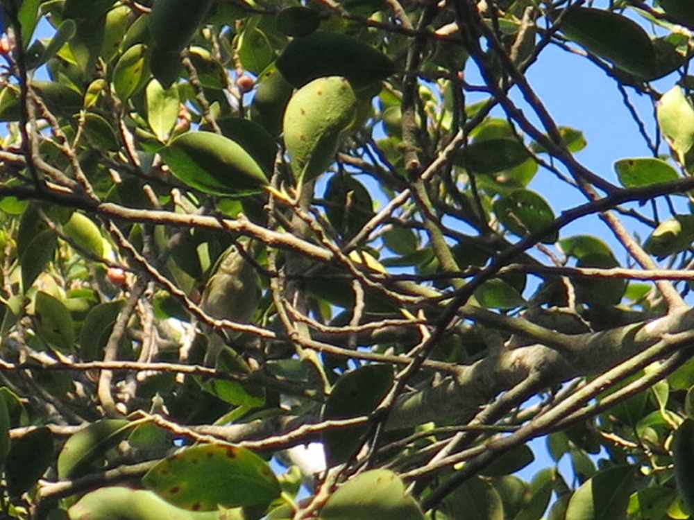 Un Pouillot à grands sourcils (Yellow-browed Warbler, Phylloscopus inornatus) au Jardin d’Essais Botaniques de Rabat le 15 octobre (detected by hear and later spotted with binoculars; seen at close range (c.5m) as it foraged on the canopy of trees; small Phylloscopus warbler, smaller than Phylloscopus collybita and trochilus, with white underparts and greenish upperparts; obvious yellow supercillium and wing stripe on the greater coverts; faint paler middle of crown bill bicoloured, from orangish on the base to dark on the tip; legs seemed dark or orangish-dark but were hard to see as the bird was very active; call a fast >FiuÍ!< (recorded) heard around four times during fifteen minutes or so, most of the time the bird was silent).
