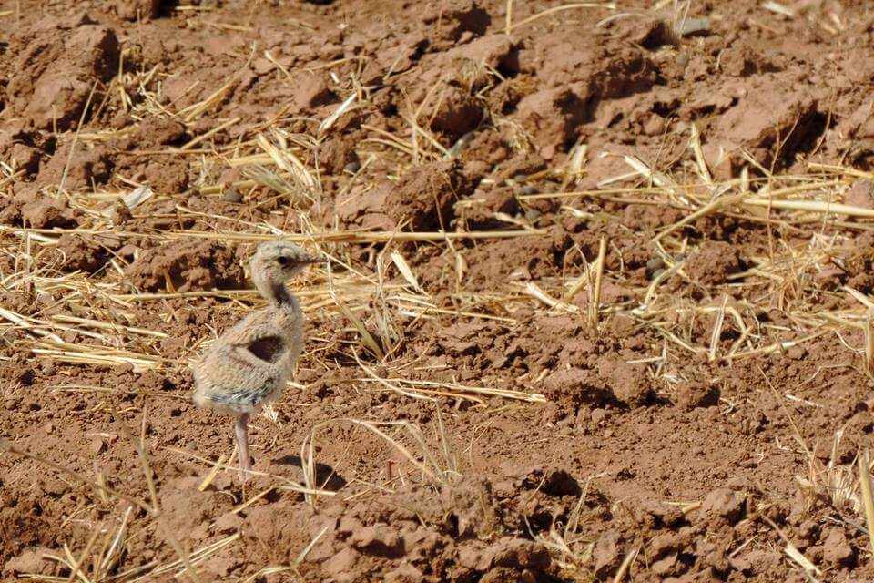Un couple de Courvites isabelles Cursorius cursor avec des poussins de quelques jours entre Sidi Rahal et Demnate (Haouz) le 10 juillet 2017 (Isabelle Six, Facebook).