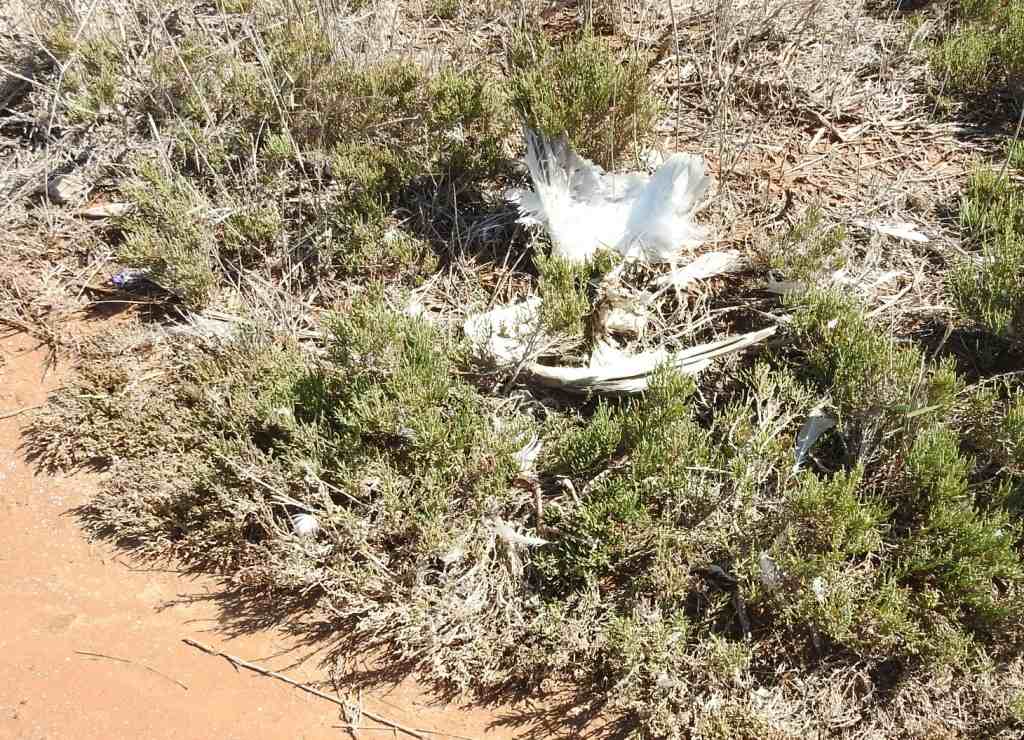 En prospection à la Sebkha bou Areg le 28 février 2018, des cris de Goélands leucophées attirent mon attention : ils sont attaqués par un Aigle de Bonelli immature. Celui-ci capture un goéland et le maintient dans l’eau. Le 10 mars, il n’en reste plus que des plumes, les ailes, les pattes, la tête et quelques os dispersés sur les salicornes ; d’autres restes de goélands sont également présents alentour.