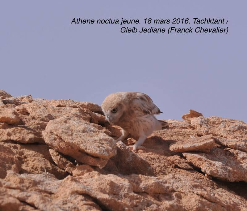Le couple de Chevêches d’Athéna de Gleib Jediane / Tachktant a élevé deux jeunes qui commencent à quitter le nid (F. Chevalier, M. Belhaj, J. Chevalier et al.), ce qui fait remonter la ponte à début janvier.