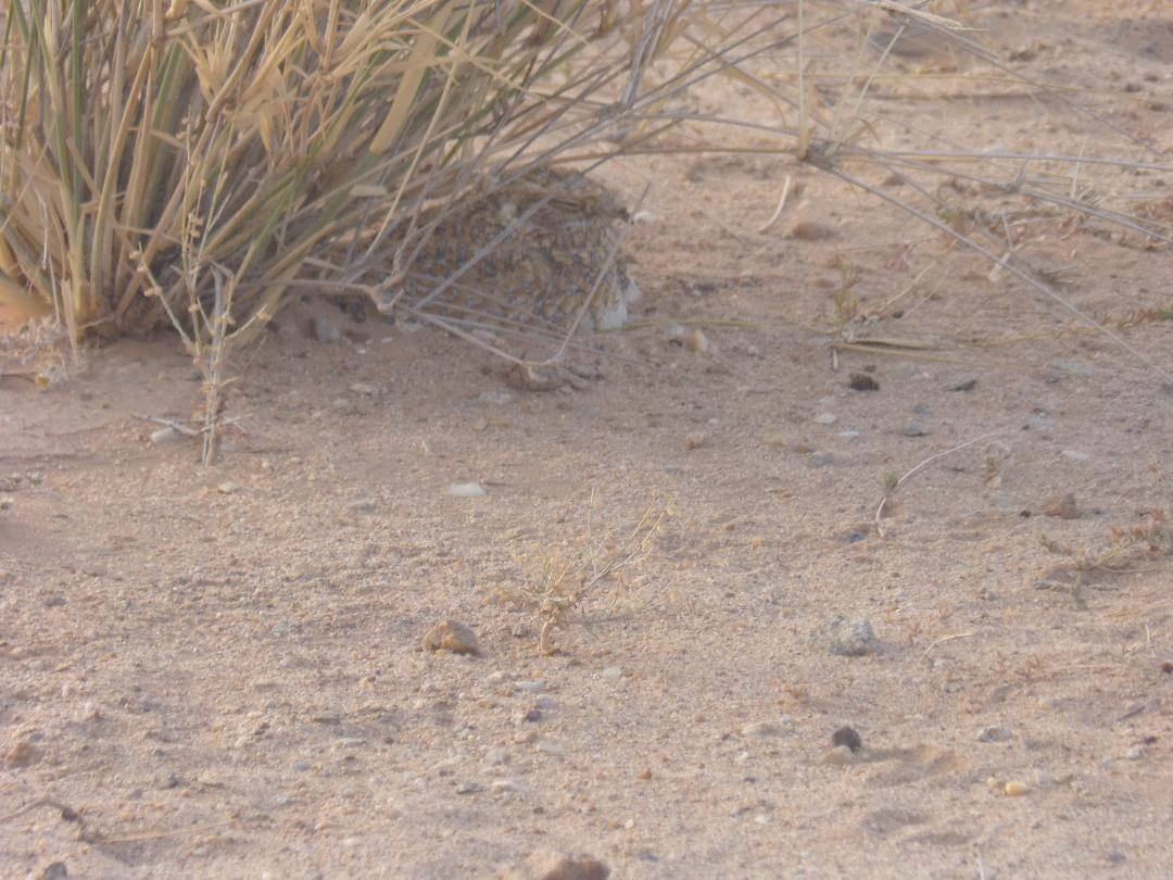 On s’y attendait bien sûr, mais voilà la première preuve de nidification de l’Engoulevent doré Caprimulgus eximius au Maroc : un adulte sur deux jeunes à l’Oued Chiaf près d’Aousserd le 18 mars 2019 (M.L. Samlali, A. Qninba)