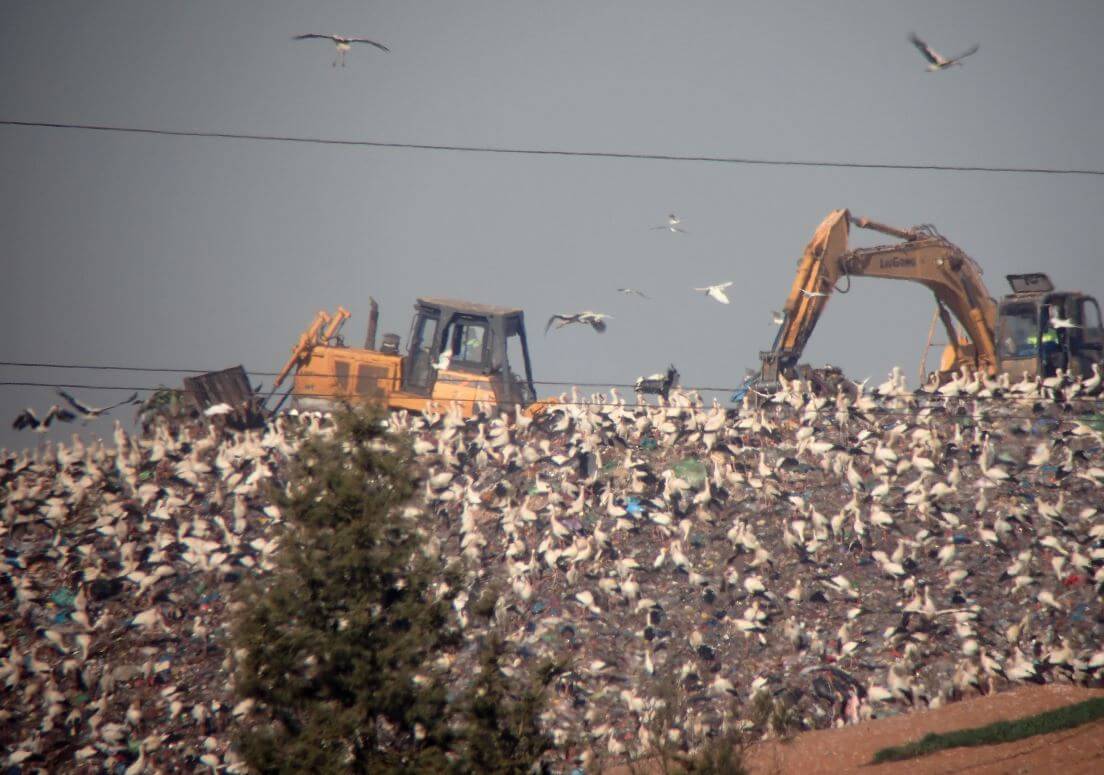 Les décharges à ciel ouvert sont réputées pour attirer de nombreux oiseaux tels que cigognes, laridés, rapaces ou encore corvidés. Selon la localisation et la taille de ces décharges, on peut parfois observer une très grande concentration d’oiseaux. C’est le cas de la décharge de Rabat, sur laquelle le 12 janvier un groupe estimé à 1400 Cigognes blanches, plus environ 500 posées dans les champs alentours étaient présentes, soit quasiment 2000 cigognes présentes (un record au Maroc ?) !