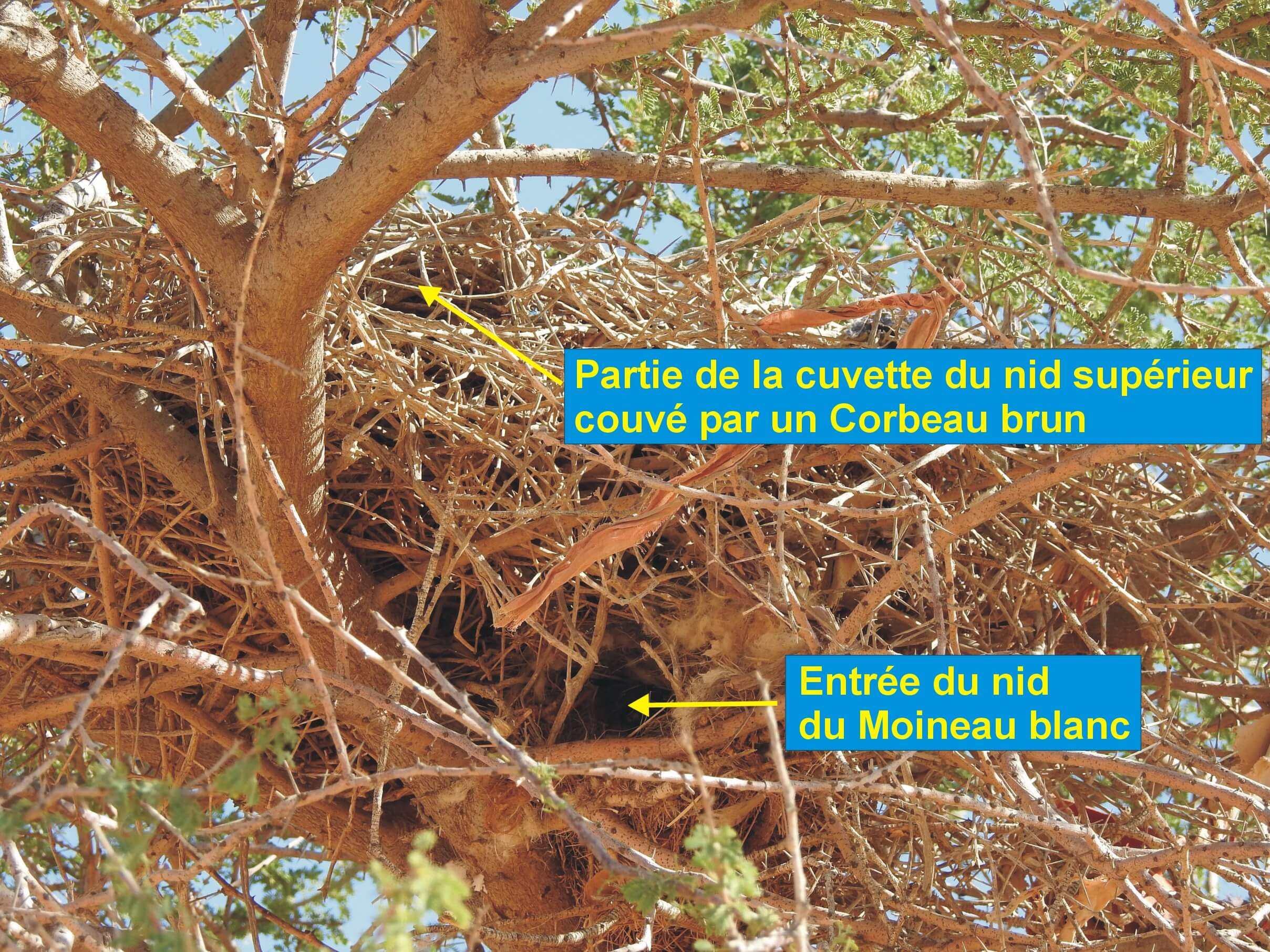 Un nouveau cas de nid de Moineau du désert Passer simplex construit au-dessous de celui d’un Corbeau brun Corvus ruficollis après celui mentionné dans les archives de la Centrale Ornithologique Marocaine (in Bergier et al. 2017).