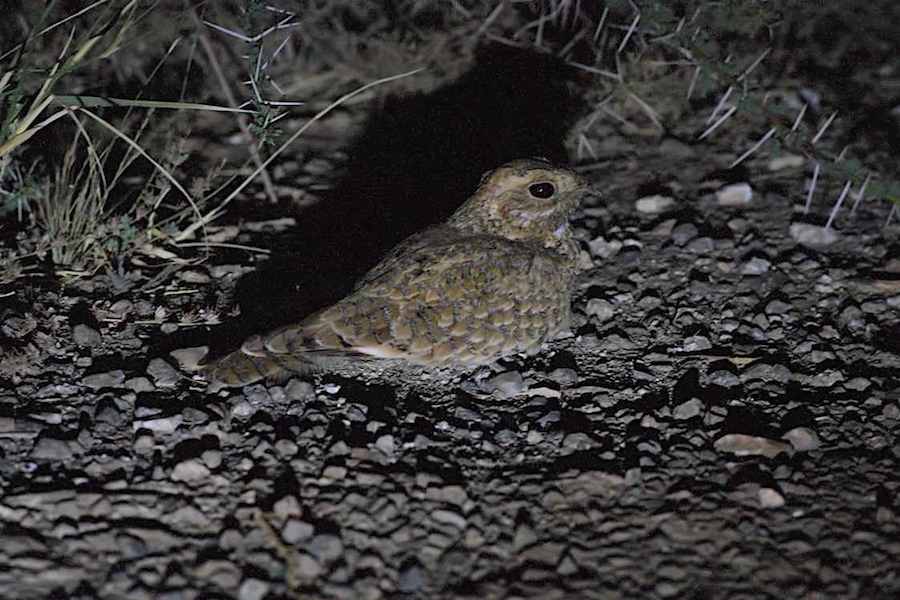 Later in the night we had another individual sat on the road 1.8km away from the previous singing male, ambush feeding at 22°40’36.8″N 14°29’23.9″W (Point 3). We watched this on two occasions on the road before it flew north. Immediately after this we then had another individual 250m away again at 22° 40′ 41.23″N -14° 29′ 31.30″W (Point 4) sat on the road, which we believe to be a different bird.