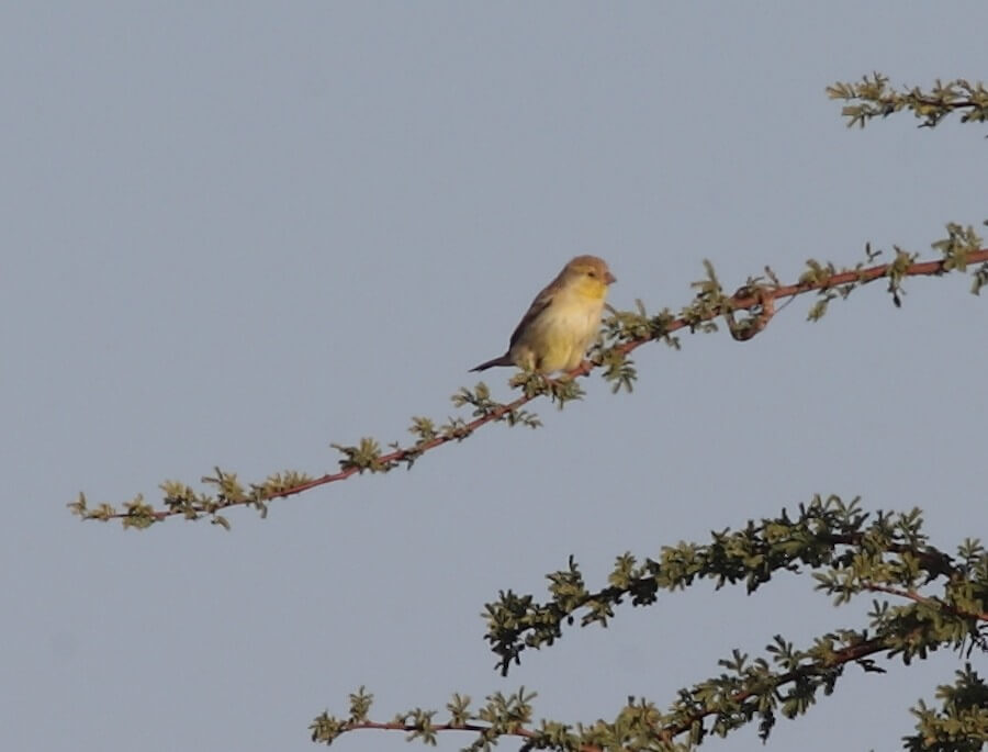 We had a single juvenile individual on the 20th April in the morning with a large flock of Desert Sparrow on the north side close to the road. There were amazing numbers of Desert Sparrow present, we counted 250 in the north part of the wadi alone. All feeding on the seeds of the grass growing in the wadi, as well as on locusts. We searched the wadi several times later in the day and the following day and could not relocate the sparrow.