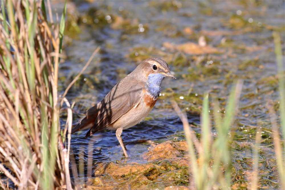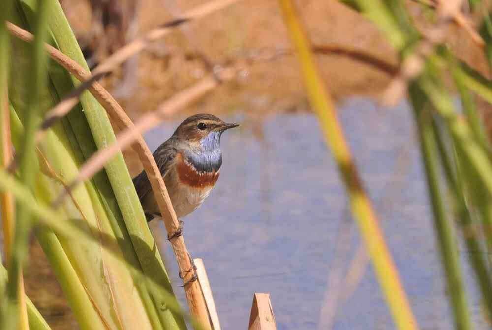 La Gorgebleue à miroir Cyanecula svecica est un migrateur paléarctique peu fréquent et un visiteur d’hiver rare dans le Sahara Atlantique où tous les mâles bien observés présentaient le miroir blanc caractéristique des sous-espèces C. s. cyanecula d’Europe centrale et C. s. namnetum de l’ouest de la France (mais cette dernière n’atteint probablement pas le Sahara Atlantique – Arizaga et al. 2015)