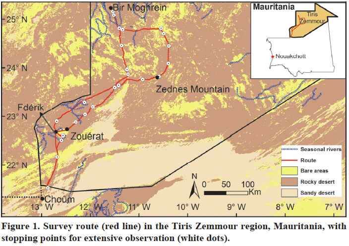 Une intéressante note due à Santarém et ses collègues vient de paraître dans la revue Malimbus. Elle traite des espèces observées du 7 au 15 avril 2017 au nord de la Mauritanie (région du Tiris Zemmour), juste en limite du Sahara Atlantique Marocain.