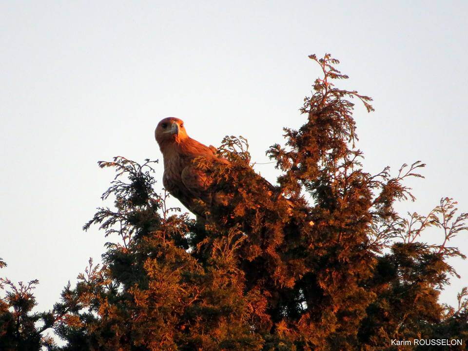 ‘Un Aigle ibérique Aquila adalberti bagué et porteur d’une balise en visite dans la région de Bouznika hier 27 octobre. Merci à Abdeslam Rihane et Rachid El Khamlichi pour les infos précises sur la localisation’ (Karim Rousselon, Facebook)