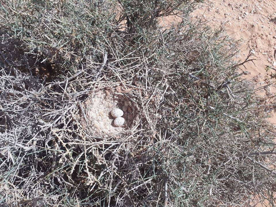 Ça promet de belles nidification d’automne-hiver ; les Sirlis du désert ont d’ailleurs entamé leur reproduction : voir par exemple ci-dessous un nid à deux œufs près de Boukra le 21 octobre (A. Qninba)