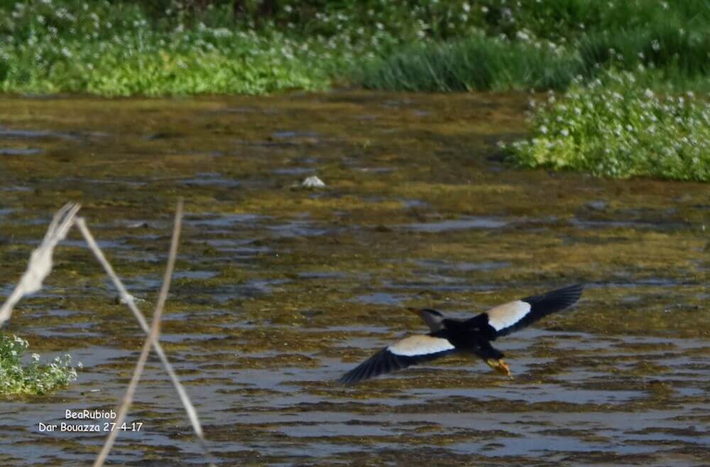 Dar Bouazza confirme son intérêt comme zone humide avec deux nouvelles observations particulièrement intéressantes dues à Beatriz Rubio Blanco et Carlos Gutiérrez Expósito le 27 avril : une Aigrette des récifs (Egretta gularis) et un Blongios nain (Ixobrichus minutus). Le Blongios a été revu au même endroit par Benoit Maire le 27 mai ; il s’y reproduit peut-être.