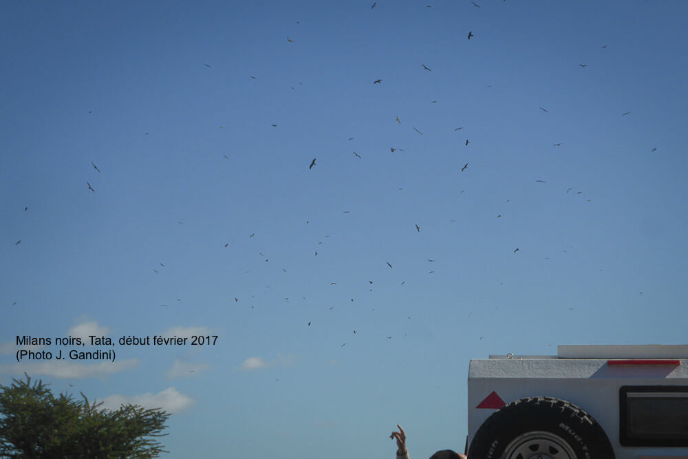 - Several hundreds of Kites with many White Storks near Tata in early February (Jacques Gandini)