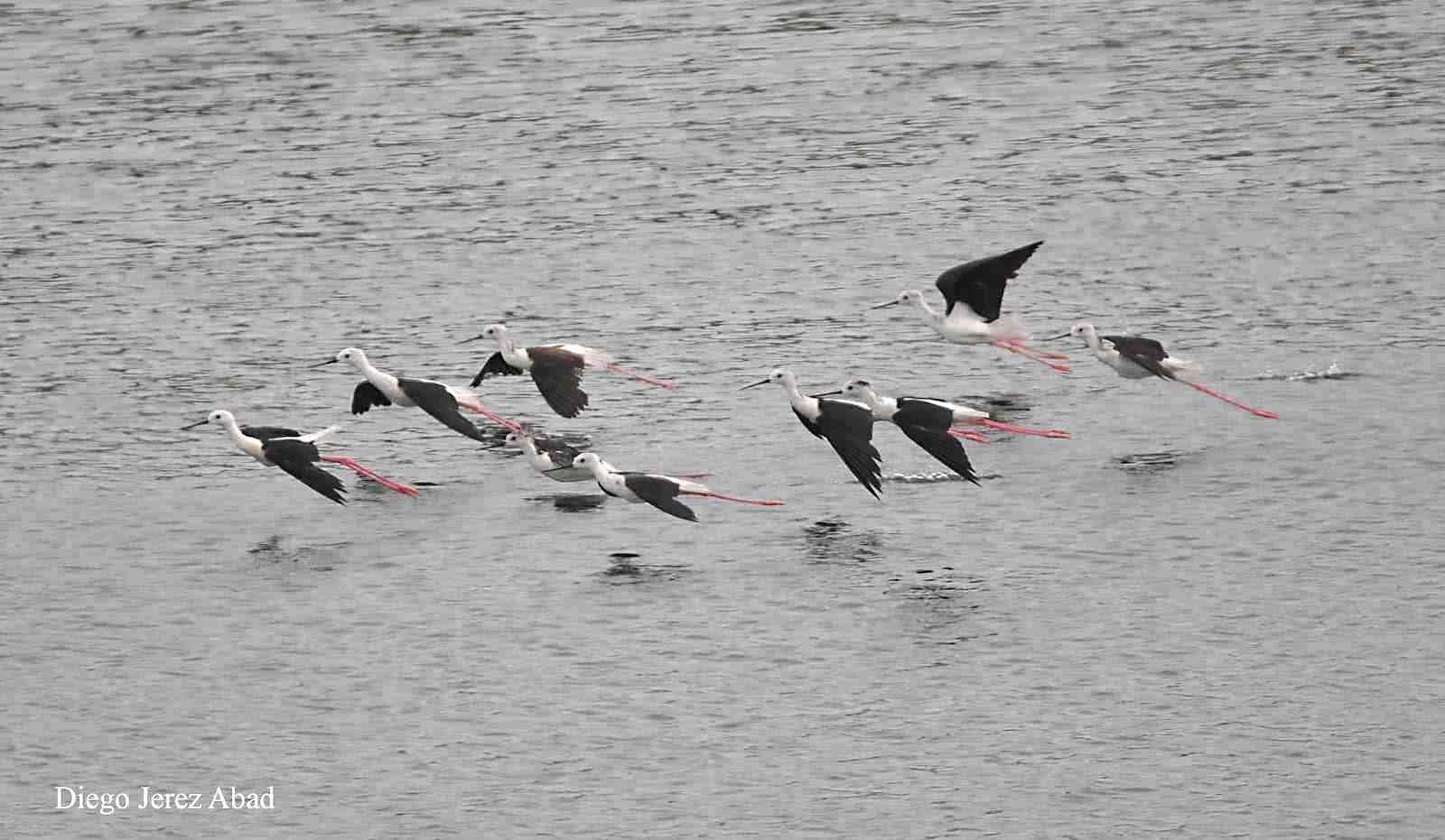 - 1 juillet 2018. Melilla. Un groupe de 13 Echasses blanches Himantopus himantopus, adultes et juvéniles en halte migratoire (Diego Jerez Abad & Rosa Ramírez Espinar)