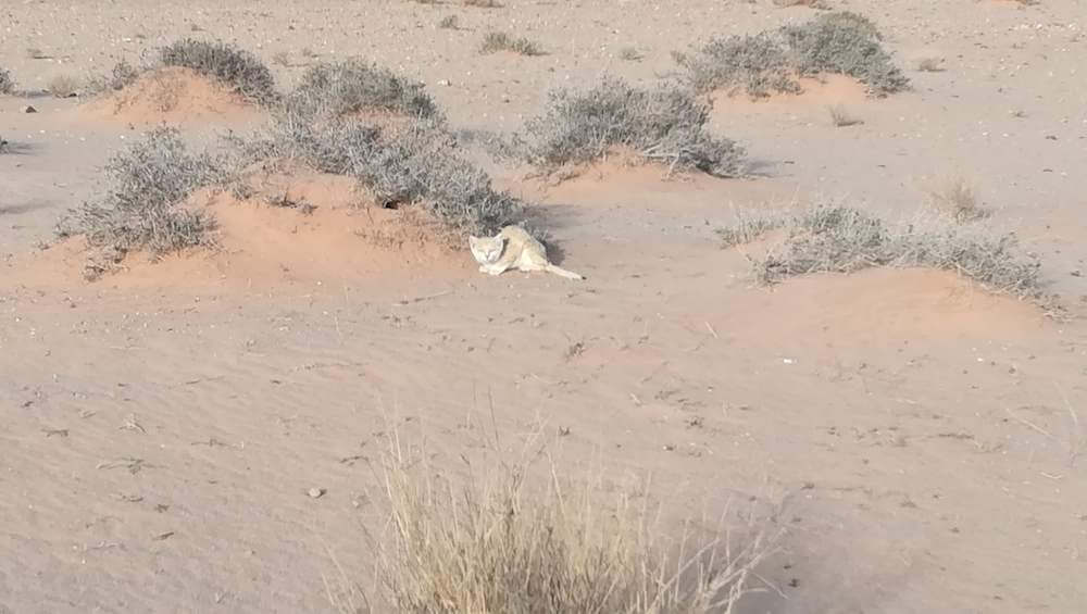 The Sand Cat Felis margarita is not uncommon near Aousserd. This one has been photographed on 7 January at 100 km before Aousserd. It looks a bit skinny and not really healthy (Nico, Dakhla Rovers)