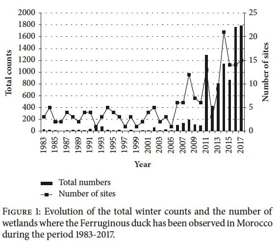 In Morocco, the national wintering population has known, during the last decade, a strong increase, in both its numbers (from tens to thousands of individuals) and distribution area (from a couple of sites to more than 21 wetlands).